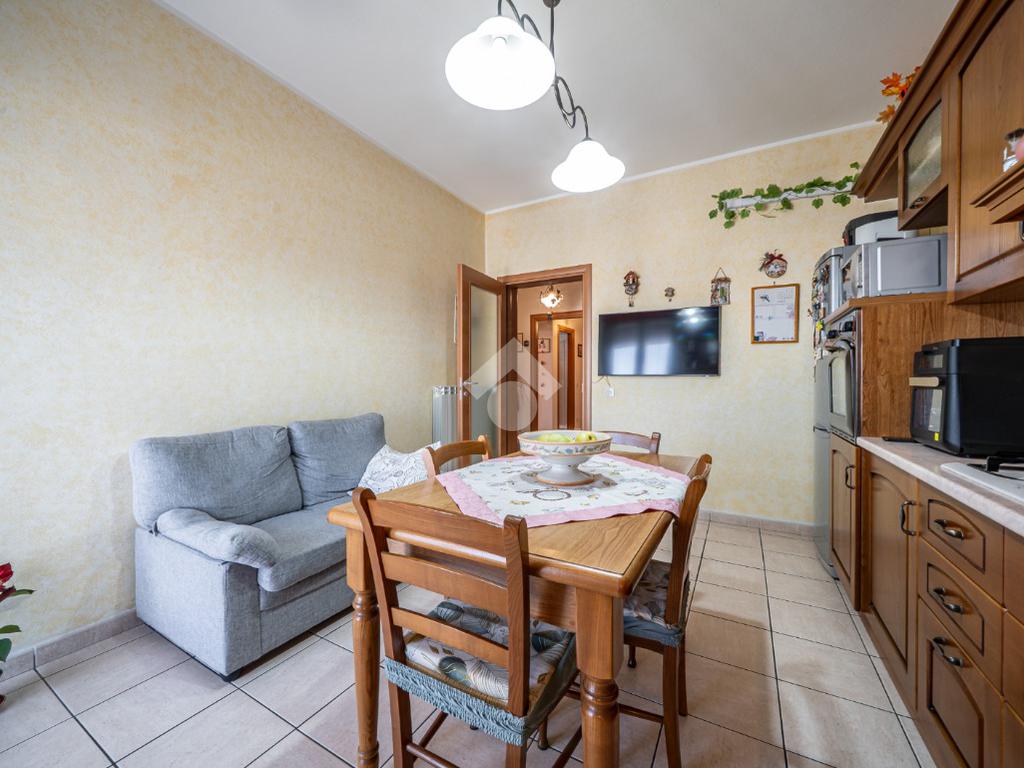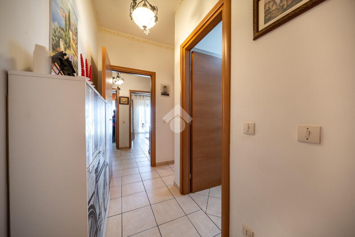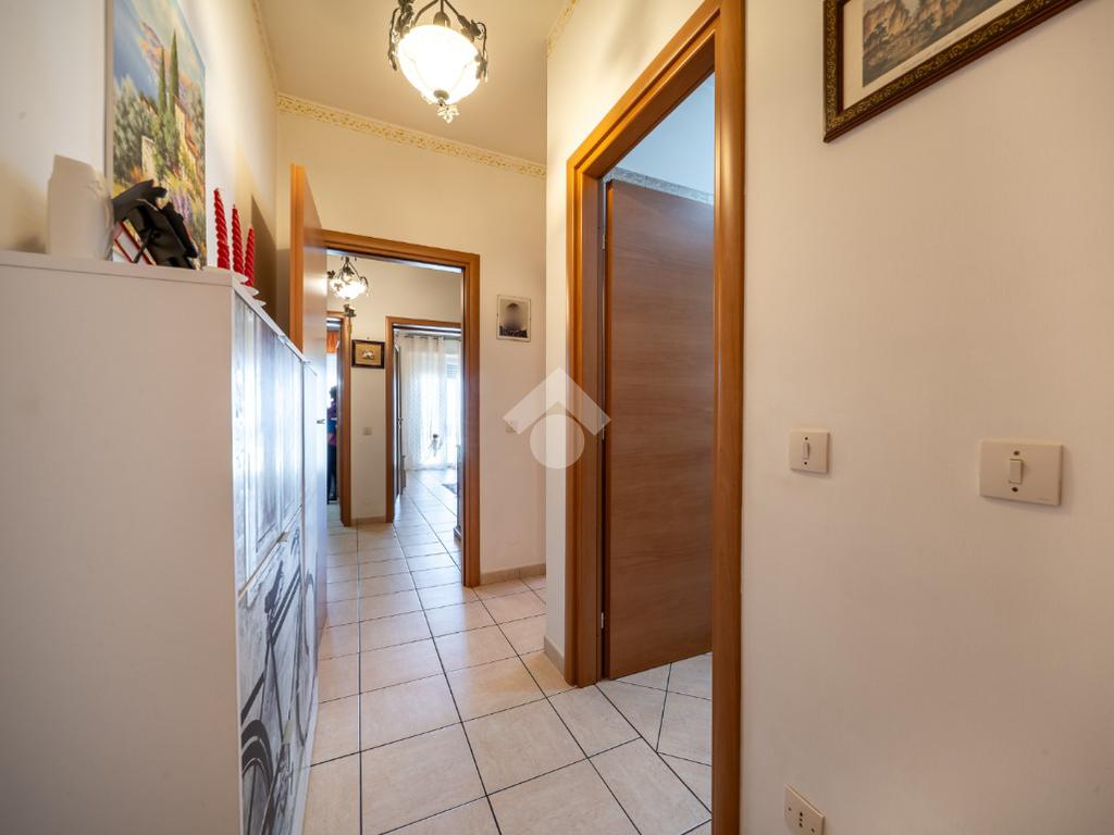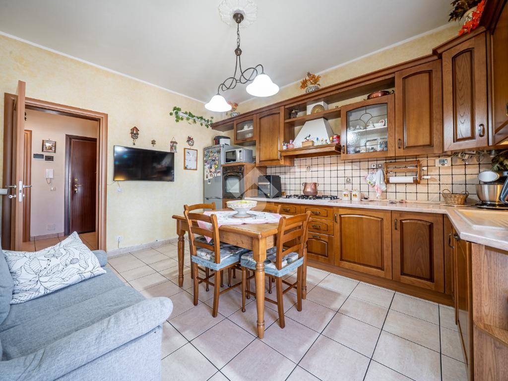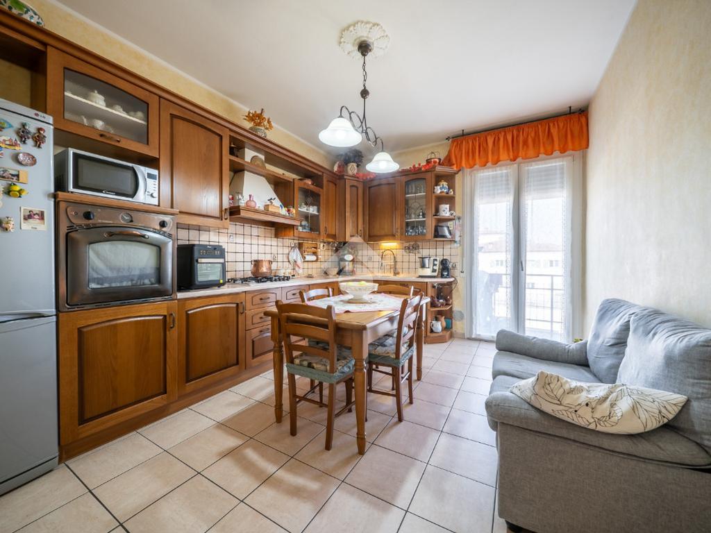 Gli ambienti interni, già rinnovati, offrono spazi funzionali e ben distribuiti: ingresso, ampia cucina abitabile con balcone, sala da pranzo/soggiorno, disimpegno notte, due camere da letto (di cui una matrimoniale), bagno.