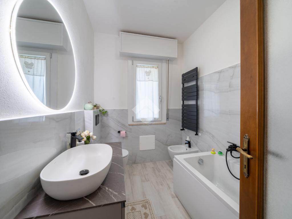 Proponiamo in vendita un elegante appartamento situato al primo piano (senza ascensore) in contesto condominiale recentemente riqualificato grazie agli interventi del Superbonus 110%. L’edificio si presenta infatti con cappotto termico completamente rifatto ed è dotato di impianto fotovoltaico condominiale con batterie di accumulo, a supporto delle spese comuni legate all’energia elettrica.