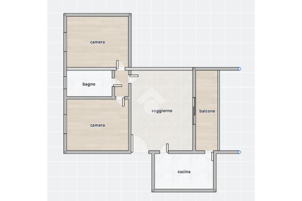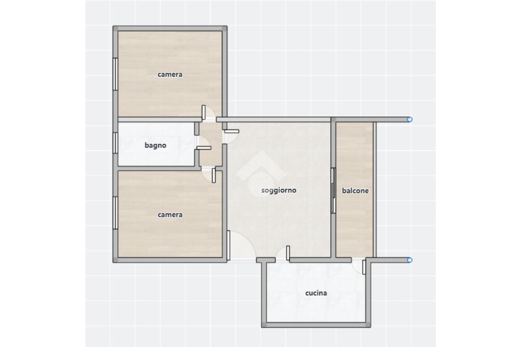 L’ingresso si apre su un ampio soggiorno, luminoso e accogliente, collegato tramite balcone alla cucina separata. Il balcone serve entrambi gli ambienti, garantendo continuità e sfogo esterno.