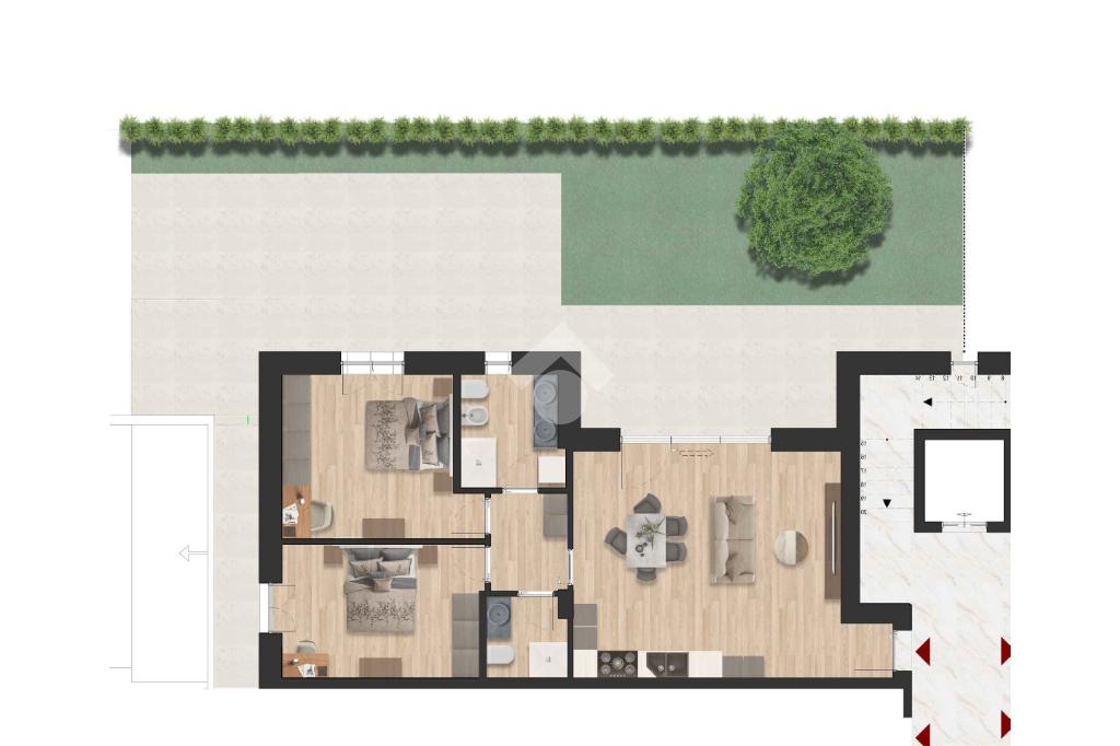 SPEZZANO di Fiorano Modenese. Se sogni un appartamento moderno con il calore e la libertà di uno spazio verde tutto tuo, questa soluzione al piano terra di La Motta Residenze è perfetta. Pensato per chi ama vivere all’aria aperta senza rinunciare alle comodità di un appartamento di ultima generazione, questo trilocale offre ambienti luminosi e funzionali, ideali per giovani coppie o si apre su un ampio soggiorno con angolo cottura, che grazie alle grandi vetrate si affaccia direttamente sul portico loggiato e sul giardino privato: uno spazio perfetto per pranzi all’aperto, momenti di relax o per chi ha bambini e animali domestici. La zona notte comprende due camere da letto e doppi servizi, che aggiungono praticità e comfort alla vita di tutti i tutte le unità di La Motta Residenze, anche questo appartamento è dotato di classe energetica A4, riscaldamento a pavimento, ventilazione meccanica controllata e di un capitolato di pregio con possibilità di personalizzazione. Le linee architettoniche moderne e il contesto di sole 14 unità garantiscono privacy e tranquillità, in una posizione strategica tra Maranello e Fiorano.