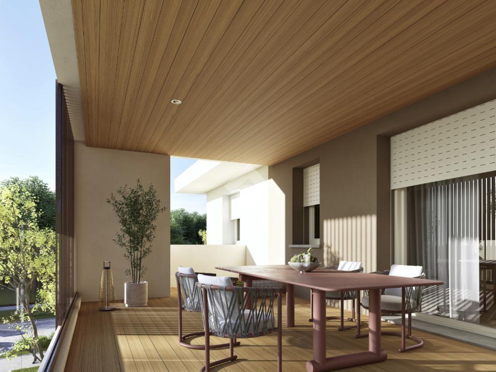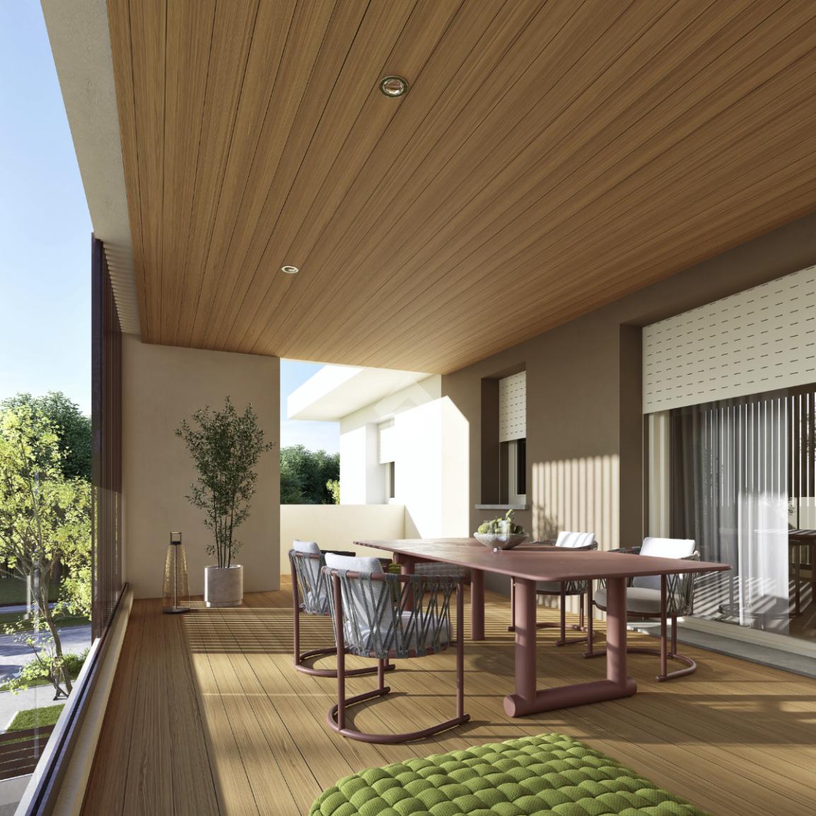 Terrazzo loggiato, affacciato sul verde e sulla ciclabile, ideale per vivere l’esterno in privacy