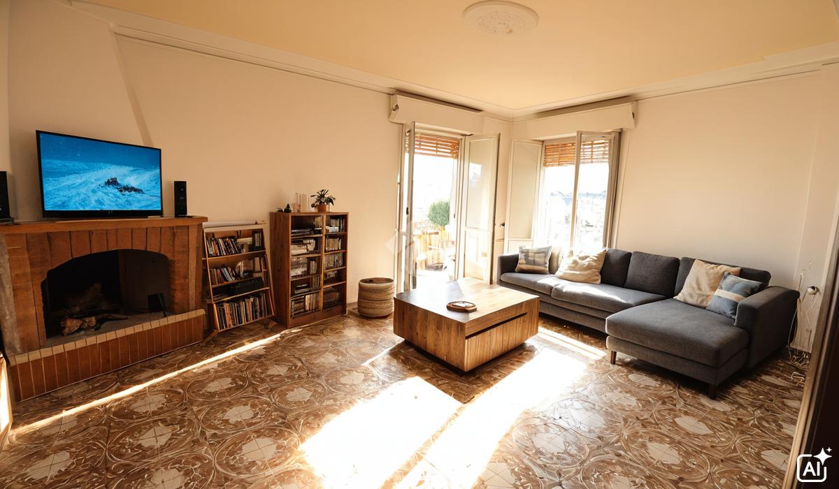 Ampia zona pranzo con cucinotto separato, salone con camino, tre camere da letto, luminose e ben distribuite, offrono spazio per tutta la famiglia.