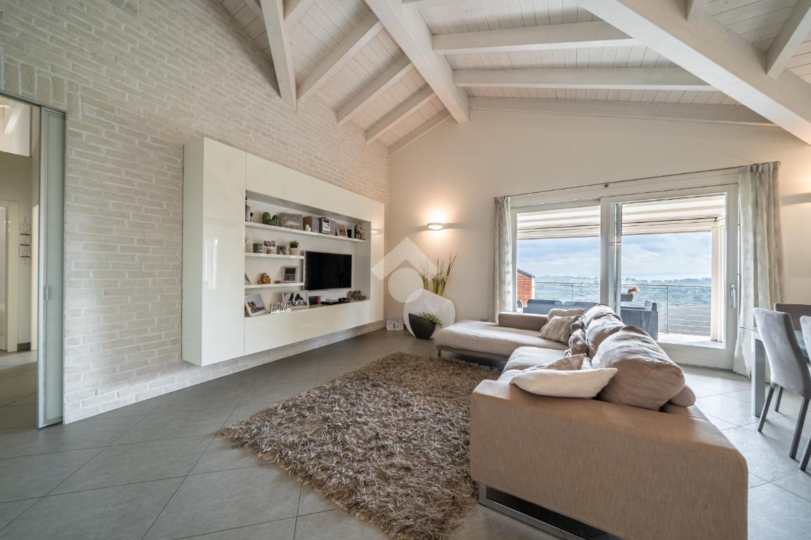 In una delle posizioni più esclusive e panoramiche di Marnello, proponiamo in vendita uno splendido attico di recente costruzione, unico al piano, libero su tutti e quattro i lati e servito da ascensore all’interno di una palazzina elegante di sole 5 unità.