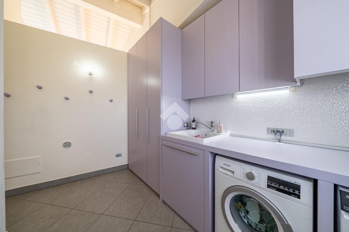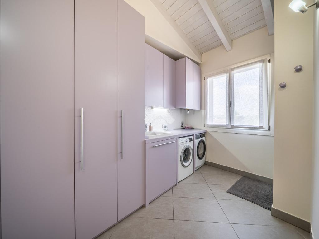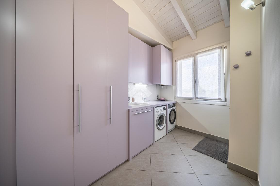 A servizio della zona giorno troviamo un bagno per gli ospiti, una lavanderia dedicata e un comodo ripostiglio/guardaroba, perfettamente integrati e ben distribuiti.