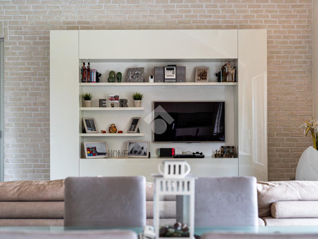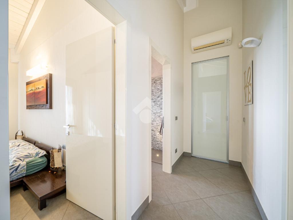 Gli interni colpiscono fin da subito per ampiezza, luminosità e qualità costruttiva. La zona giorno è composta da un salone open space di circa 50 mq, impreziosito da un tetto in legno a vista bianco che conferisce calore ed eleganza agli ambienti, con accesso diretto al terrazzo. La cucina è separabile e abitabile, ideale per chi ama vivere la casa in modo funzionale senza rinunciare allo spazio.