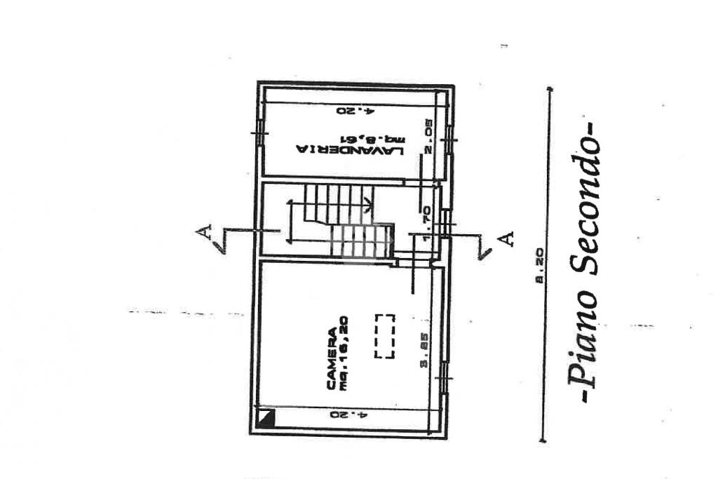 Piano secondo: seconda camera da letto e lavanderia, utilizzata anche come bagno a servizio del piano