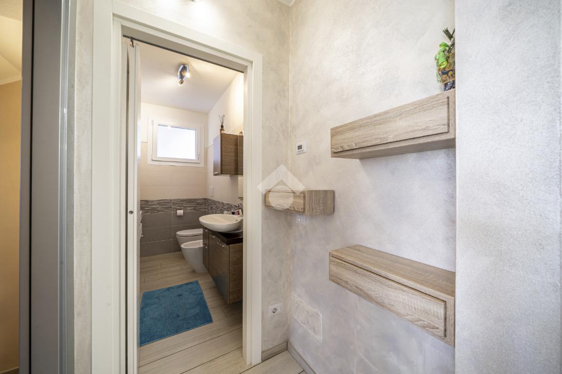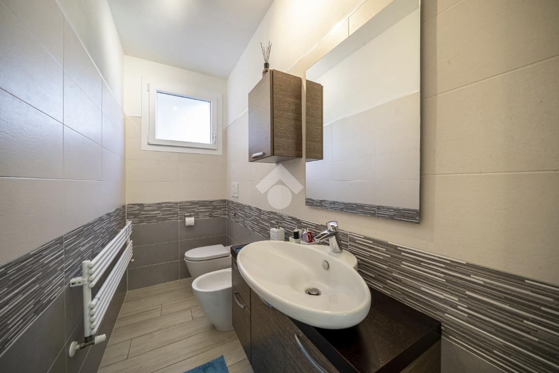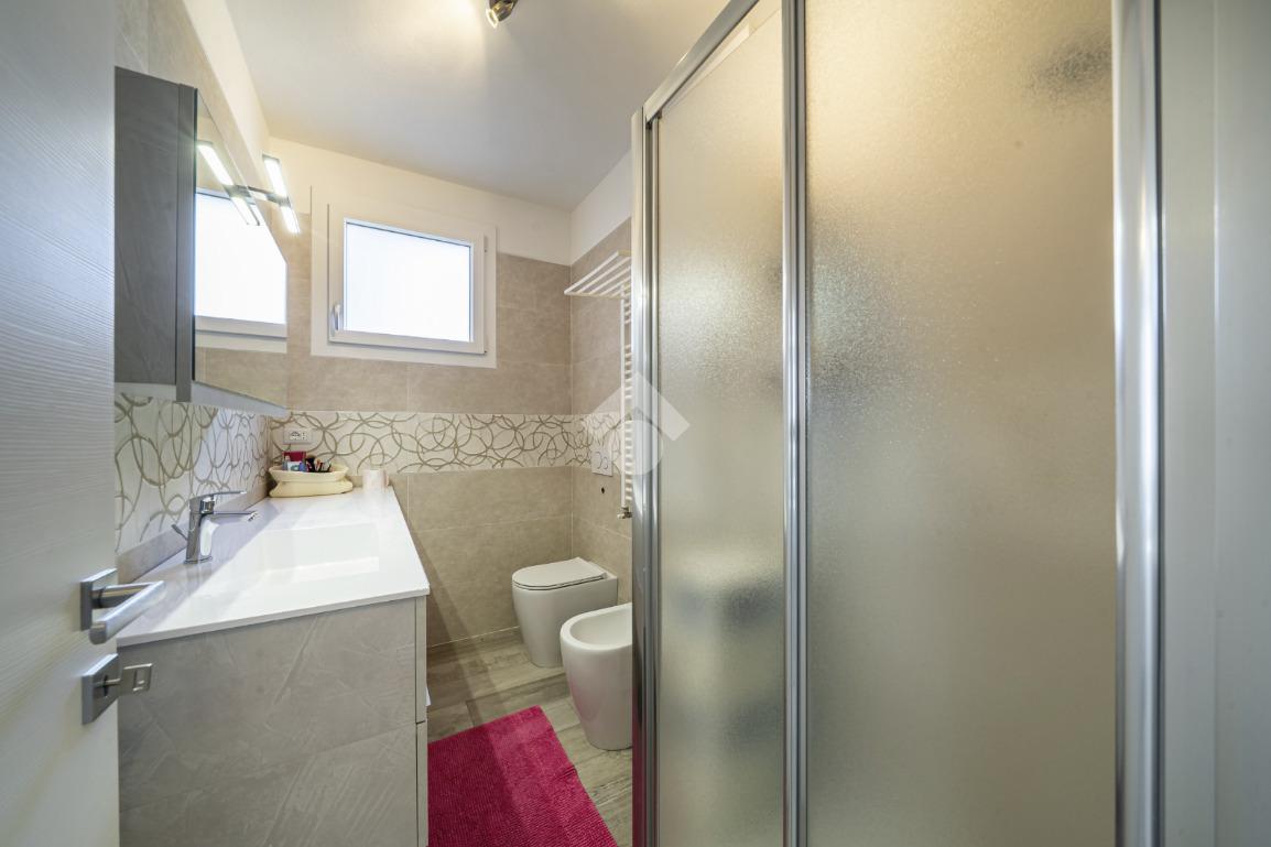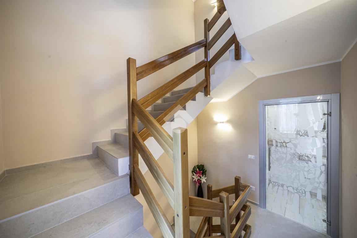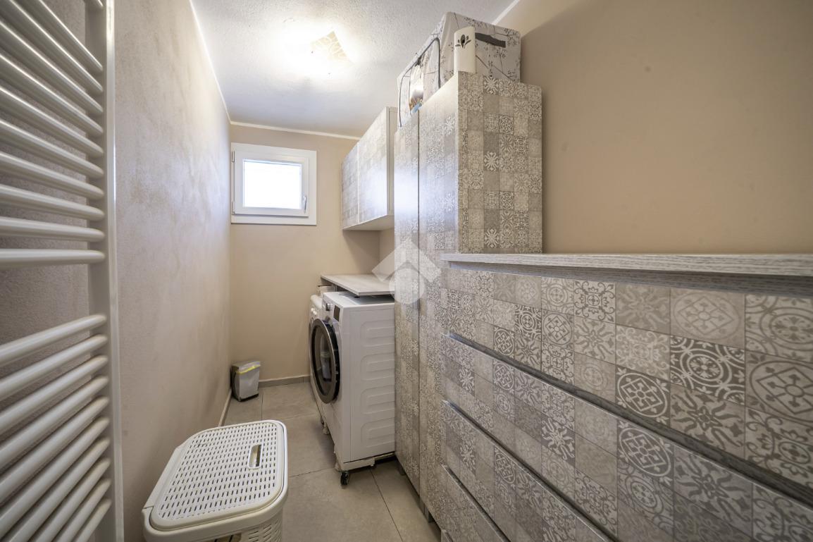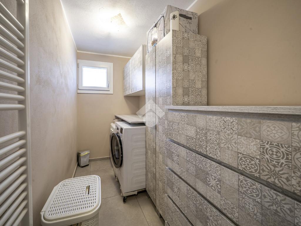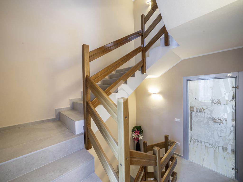 Al piano terra troviamo un elegante ingresso che disimpegna gli ambienti: un comodo garage doppio sul fianco dell’abitazione e un primo bagno di servizio suddiviso tra bagno e lavanderia, entrambi finestrati e funzionali alla gestione quotidiana.